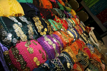 Es gibt Tanz-Requisiten aller Art, Tanzgürtel, Schmuck etc.